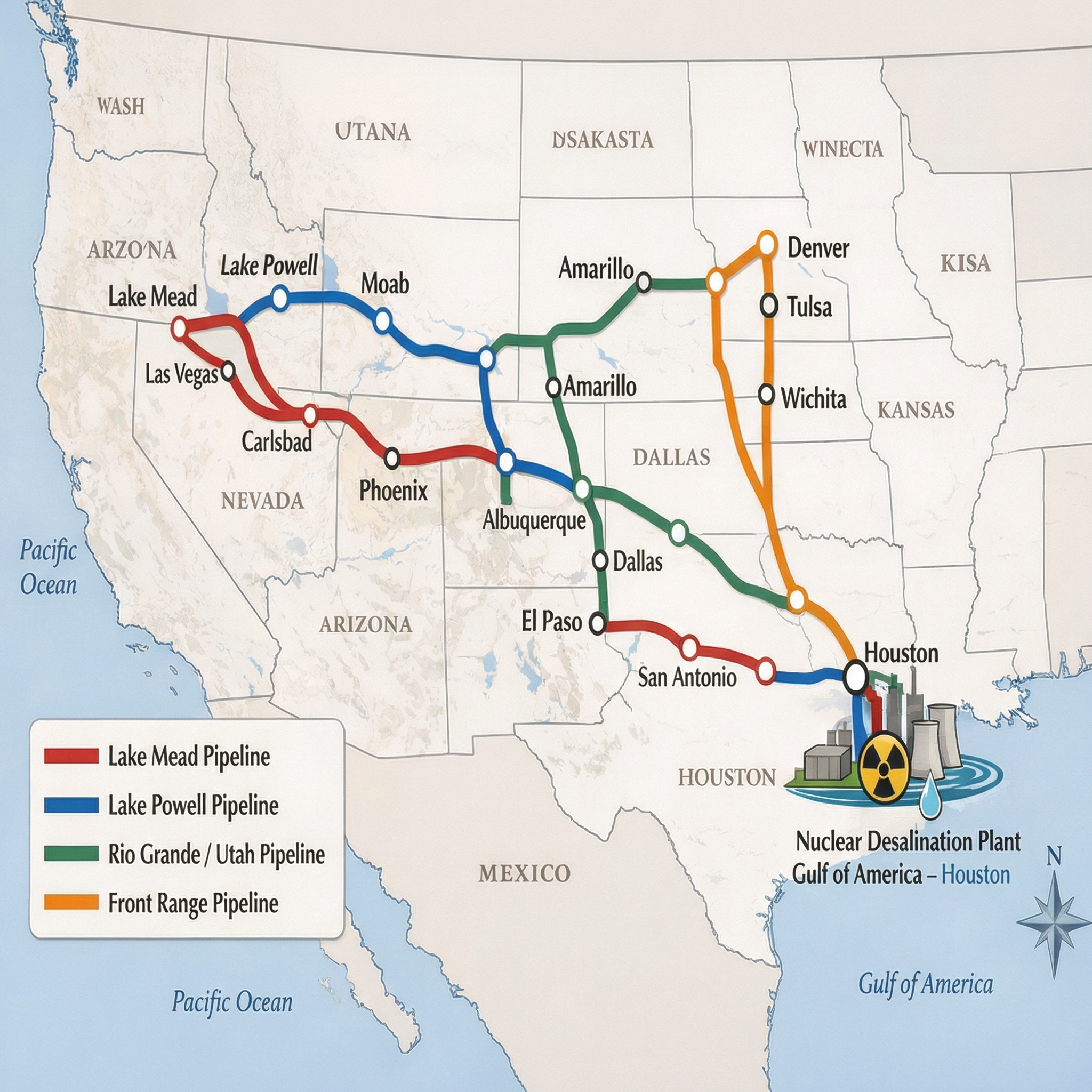 The New Gulf of America to Colorado Headwater Water Pipeline / Aqueduct – Federal Proposal